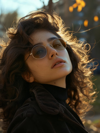 portrait handsome Italian dark-haired boy with round yellow glasses. High quality photo