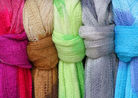Wool scarves of various colors, exposed for sale