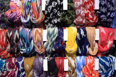 Colorful scarves on an oriental bazaar market
