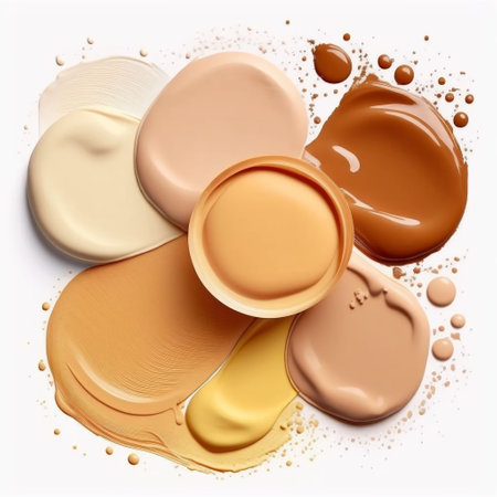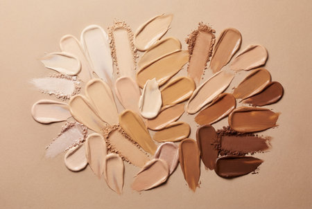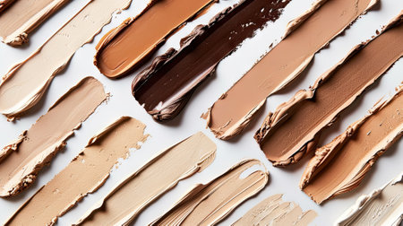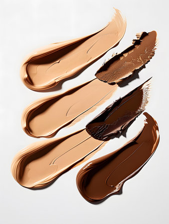 Diverse range of foundation shades with textured swatches, beauty and diversity concept