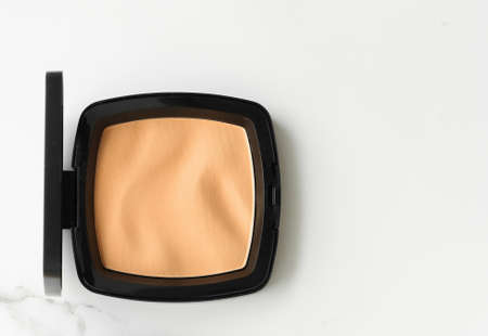 Cosmetic branding, glamour and skincare concept - Makeup foundation bottle and contouring brush on marble, make-up concealer bb cream as cosmetics product for luxury beauty brand holiday design