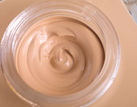 makeup of cosmetic base foudation smudge primer on background, cream lotion concealer