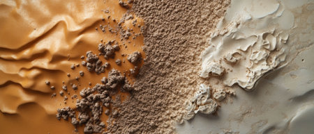 A close-up view of creamy paint swatches showcasing a blend of white, beige, and brown tones. This image highlights the texture and richness of the colors, perfect for design inspiration and artistic projects