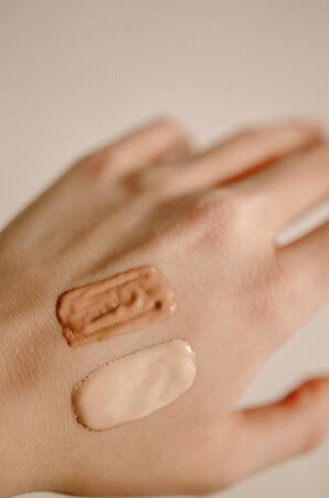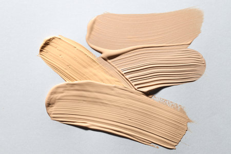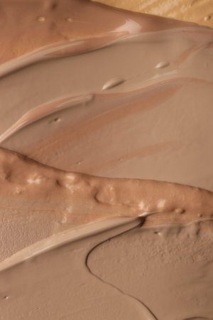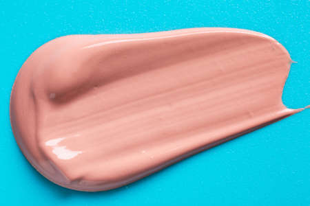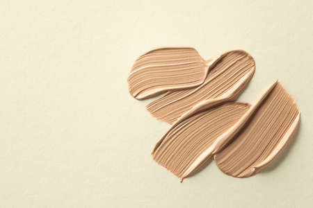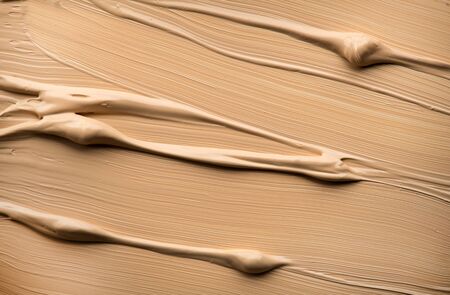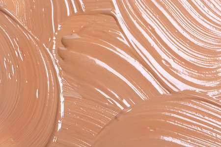 Liquid base or bb cream texture close up. Beige color corrector, concealer, foundation smudged brushstrokes.