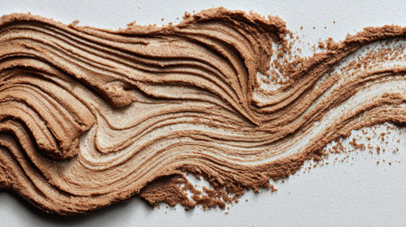 A beautifully swirled chocolate spread creates an eye-catching texture against a white background, perfect for showcasing culinary creativity or food styling.
