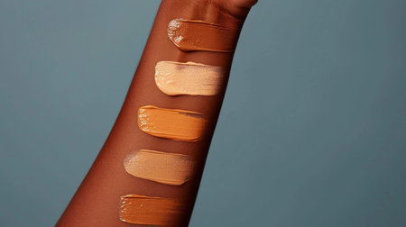 Multiple Shades of Foundation Displayed on a Models Arm for Beauty Product Demonstration in a Studio Setting. Generative AI