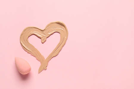Painted heart, a smear of liquid type Foundation, concealer, white background.