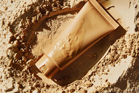 Cosmetic cream in a tube on the background of sand. Skin care.