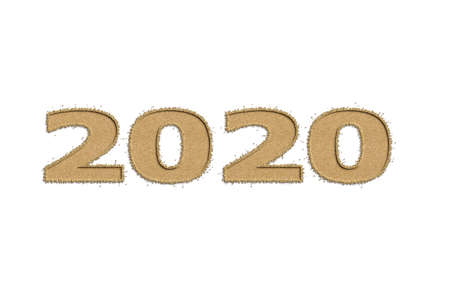 Happy New Year 2020 logo with sand design. Cover of business diary for 2020 with wishes. Brochure design template, card, banner. On a white background.