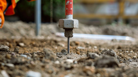 A closeup of a soil compaction test being conducted with a weight being dropped onto the ground to measure its compactness