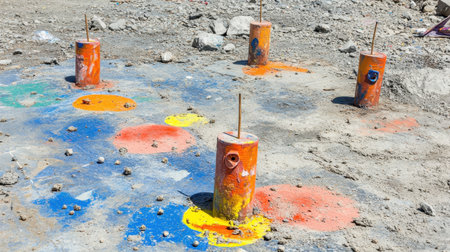 Colorful paint strokes on a canvas in an art studio during daylight hours