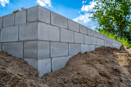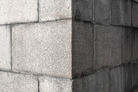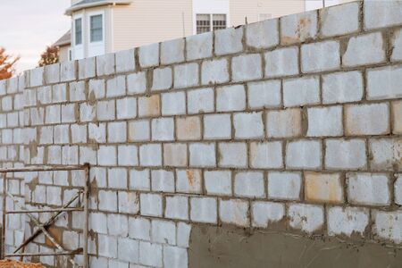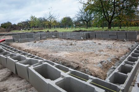 The foundation of the house is built of concrete blocks bricklaying new house wall