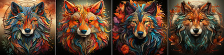 A vibrant vector illustration of a majestic wolf head rendered in intricate Celtic knot and leaf motifs, blending colorful gradients and ornate patterns to evoke strength, nature, and mythic artistry in harmony.