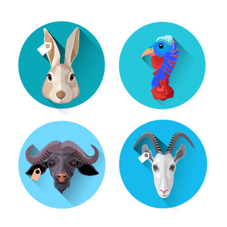 Farm Animal Set Icon Collection Flat Vector Illustration
