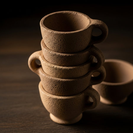 A stack of vibrant yellow and black ceramic bowls placed on a dark table, creating a bold and artistic contrast.