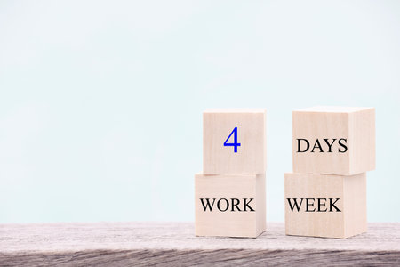4 day work week symbol on wooden blocks four day working week concept. Modern approach doing business short workweek. Effectiveness of employees. Productivity and efficiency