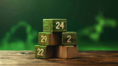 Wooden cubes with numbers 2024 yellow background are made by hand