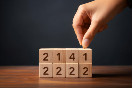 Wooden cubes with the date of the new year 2024 on a wooden background