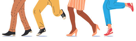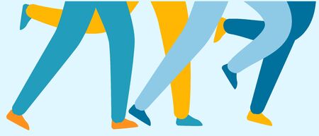 Feet of running people. Set vector concept illustration in flat cartoon style.
