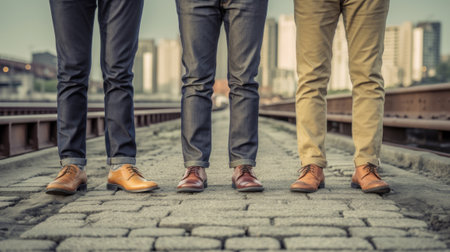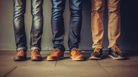Three people in jeans and shoes. Generative AI