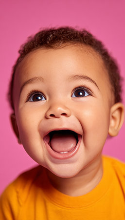 Radiant baby face with a heartwarming smile radiating joy and wonder in a young child portrait