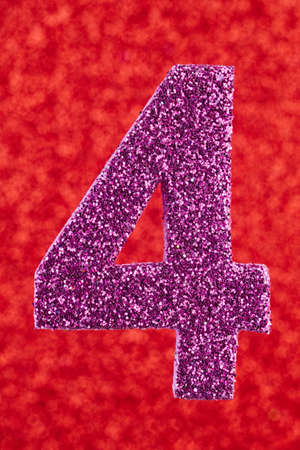Stylized Glowing Design Of Number Four, Digital Neon Effect On Dark Abstract Background