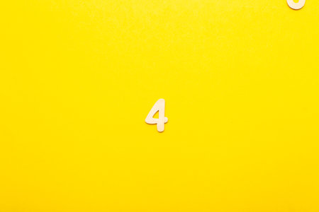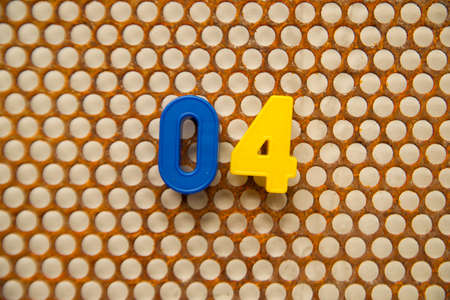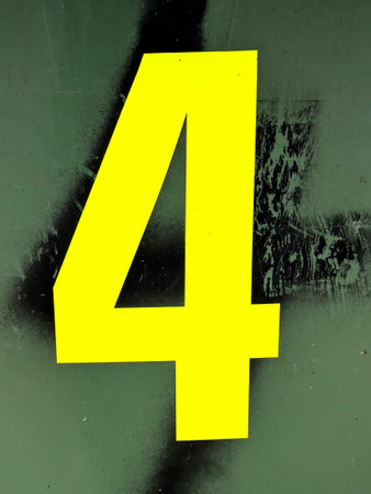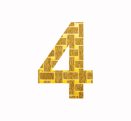 Education showing textured wooden number four with cracks and grain detail on a neutral background keywords: number 4, wood, wooden, textured,...