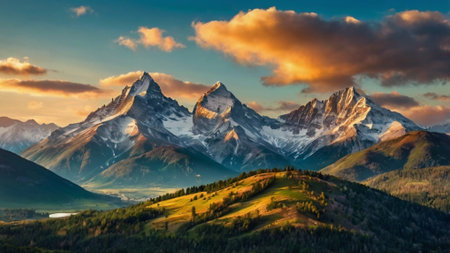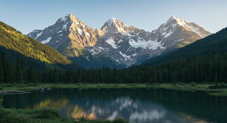 An AI generated illustration of majestic mountains revealing the majestic calm crisp beauty of nature