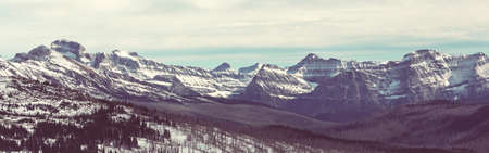 Scenic snow-covered peaks in winter in the Glacier National Park, Montana, USA. filter.