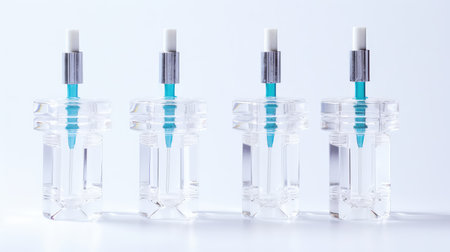 Laboratory tools and test samples on clean white surface. Symbolizes precision and scientific research.