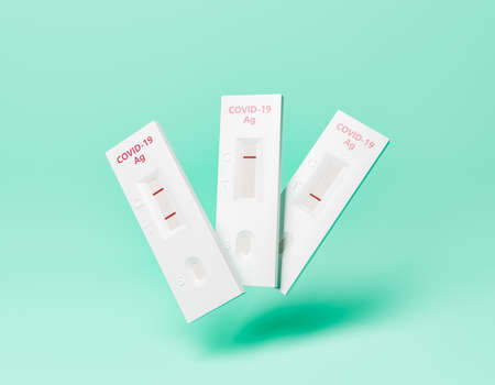 antigen tests floating in the air with positive, negative and invalid results. pandemic concept. 3d rendering