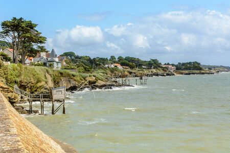 Coastline with fisherman huts in Pornic, Britanny, France