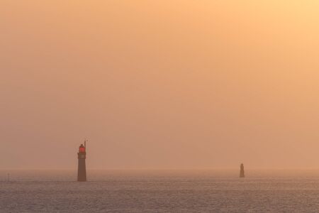 Lighthouses during sunset over a calm sea (Saint Malo, France)