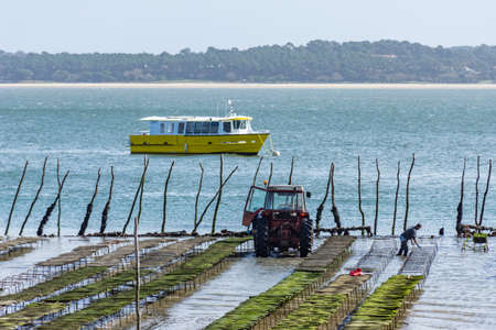 Cap Ferret on the Arcachon Bay, France. Oyster farmers at work