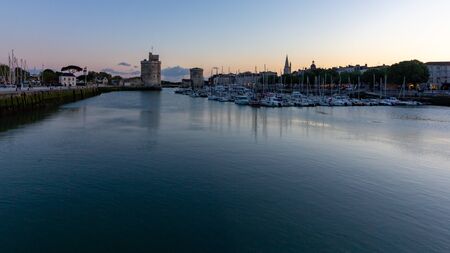 Harbor by night with beautiful sunset in La Rochelle Town