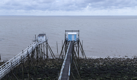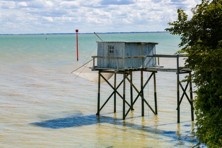 Fishing cabin and carrelet net, near Bordeaux, France