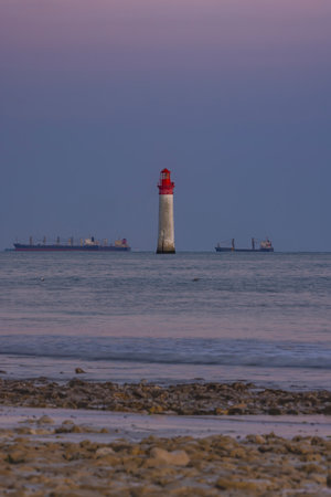 Phare de Chauvea near Ile de Re with ships to La Rochelle, Pays de la Loire, France