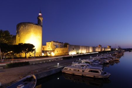 Marina in Aigues-Mortes at dusk, southern France