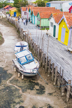 Colorful cabins on the harbor of Château d'Oléron, on the island of Oléron in France