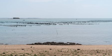 beautiful sandy beach with oyster pickets for oysters on the island of Aix Charente maritime in web banner template header