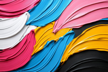 Discover a vibrant abstract texture featuring bold strokes of blue, yellow, red, and black. Ideal for creative projects and modern art displays, this artwork inspires imagination.