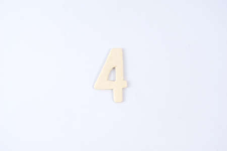 Wooden number four on white background