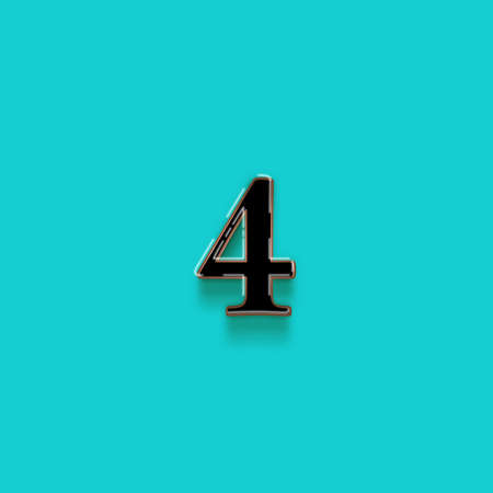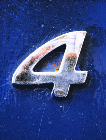 number four on an old metallic surface