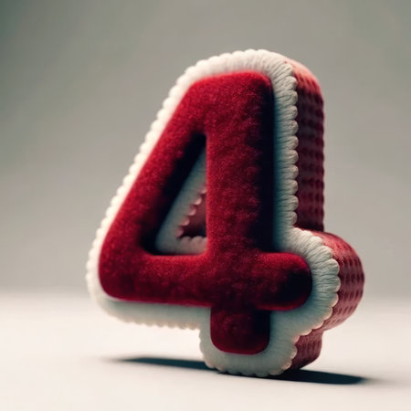A cleanly crafted red felt letter in the shape of the number 4, ideal for design projects.