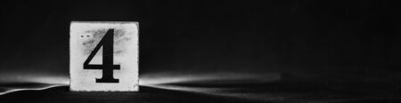 Block with number 4, four, exposed on a dark background