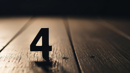 Black number four on wooden floor with dramatic lighting effect