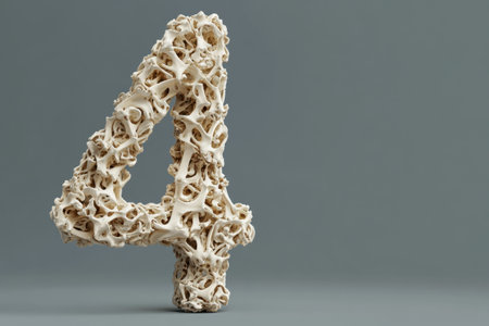 The number 4 is made of bones and is displayed on a gray background. The bones are arranged in a way that creates a unique and interesting design. Concept of creativity and artistic expression
