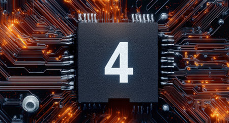 Modern computer chip with the number four.