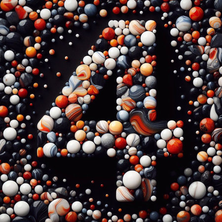 digit 4 shape made of marble pebbles. AI generated illustration