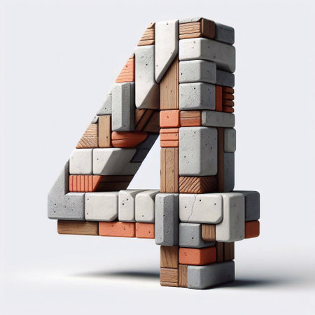 4 digit shape created from concrete and briks. AI generated illustration